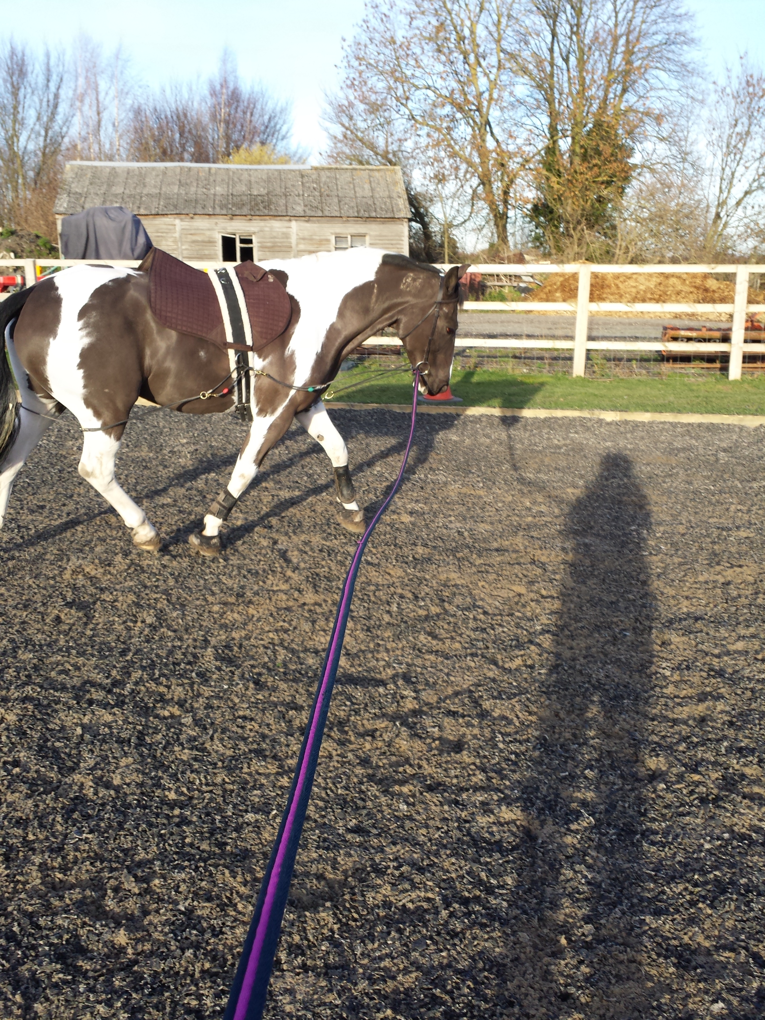 Today I was short of time as work and kids took over so I decided to lunge her in an Equi Ami http://www.equiami.com/ This is similar to a Pessoa lunging aid but is far more fluid and soft. She normally goes well in this and I wanted to watch her from the ground as I hadn’t really since I was pregnant.