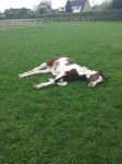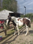 As some of my regular readers will know I also own Wilma, who is Wanda’s niece. A Wb x Cob x TB skewbald filly. She was bred by Wanda’s former owner Tessa Frost, based just outside Cambridge. Wilma’s sire is Wanda’s full brother and her dam is a former TB racehorse. I purchased Wilma at the beginning of December 2013 and she wintered with Tessa, running with the other weanlings, arriving to our yard in April.