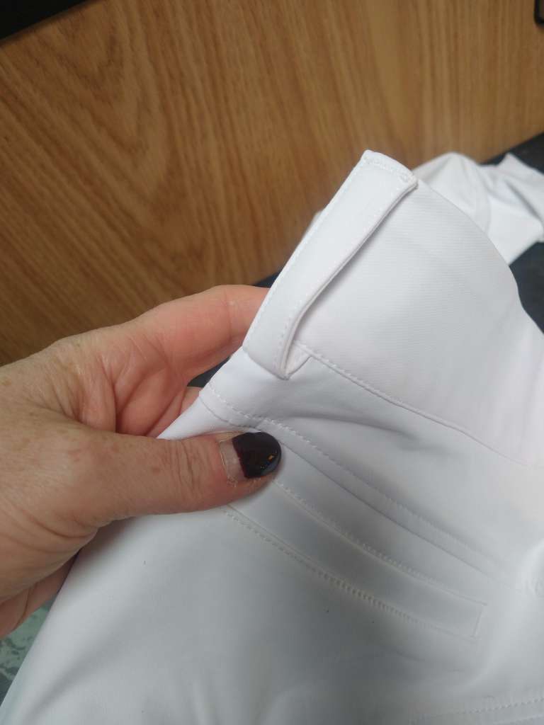 The waistband – lovely waistband, these breeches are upper mid to high waisters so more than capable of covering a bit of middle-aged tummy, without chopping you in two! I also loved the wide belt loops and the finish – as good as my more expensive breeches in terms of quality.